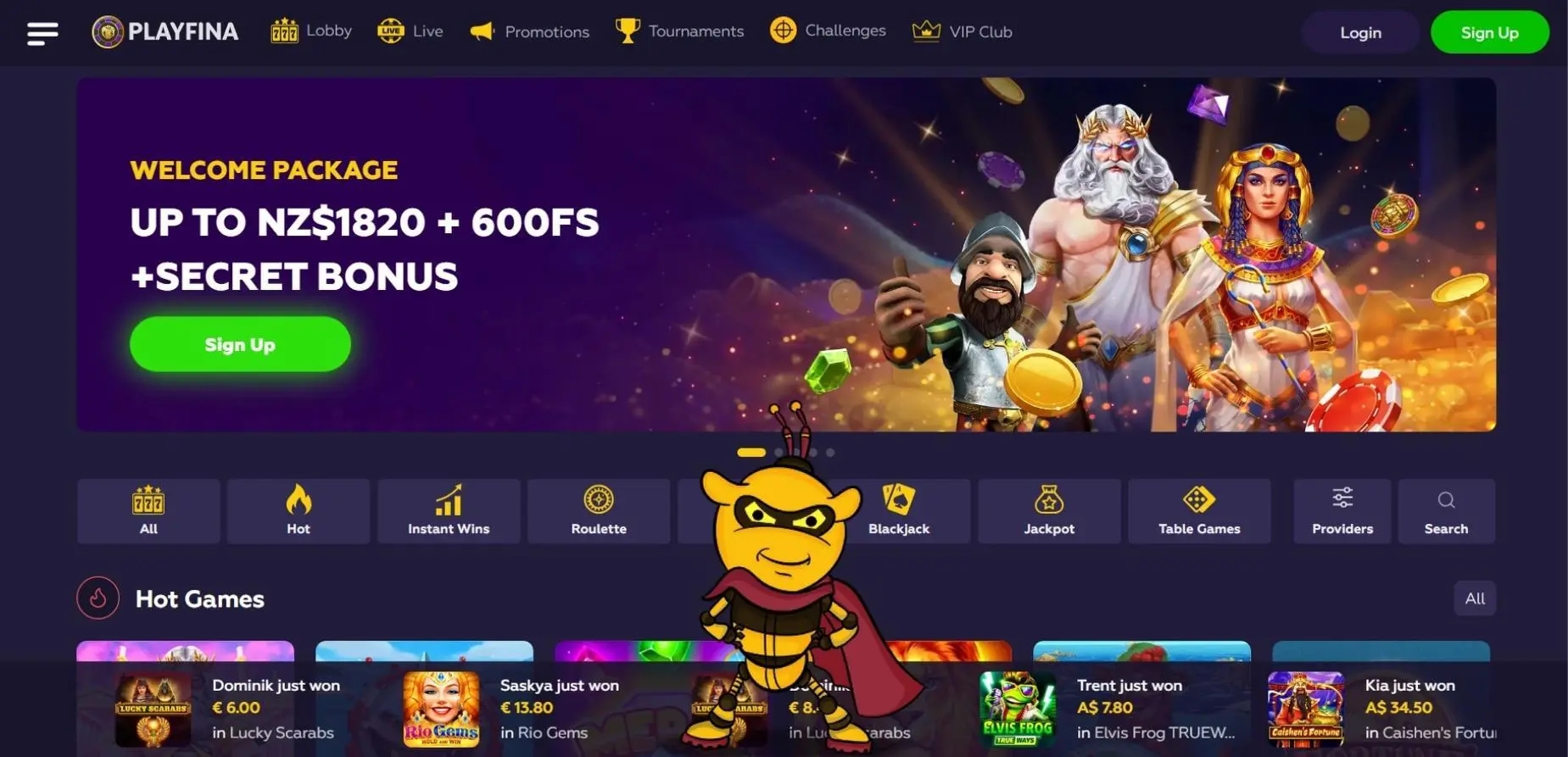 To start playing your favorite games at Playfina, you must create a personal account. After that, you can access all the site's functionality Dive into a Universe of Fun at Playfina Online Casino - Your One-Stop Shop for Gaming Thrills!! Playfina Casino Review - No Deposit, Free Spins And Best Playfina Casino How to Start Up to 1000€ + 200 FS + Secret Bonus!!! You instantly get presented with the casino's primary services and listed games, as well as its live casino section...