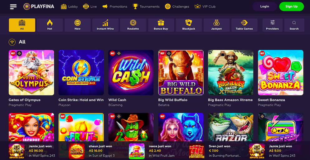 From classic slots to immersive live dealer games, Playfina has it all. Take your pick from our extensive library of titles and discover new favorites along the way. Whether you're a casual player or a seasoned pro, there's something for everyone at Playfina.